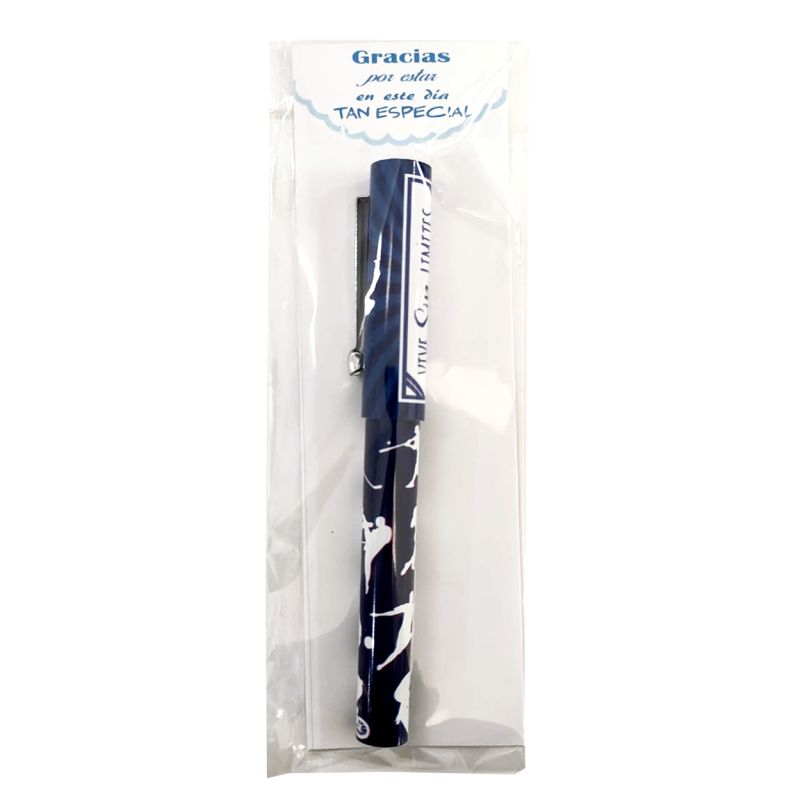 Este bolígrafo lleva una impresión a todo color de calidad. No es personalizable, el dibujo y la frase que lleva no se pueden modificar. El pedido mínimo son 12 unidades. Un regalo de boda con garantías de éxito