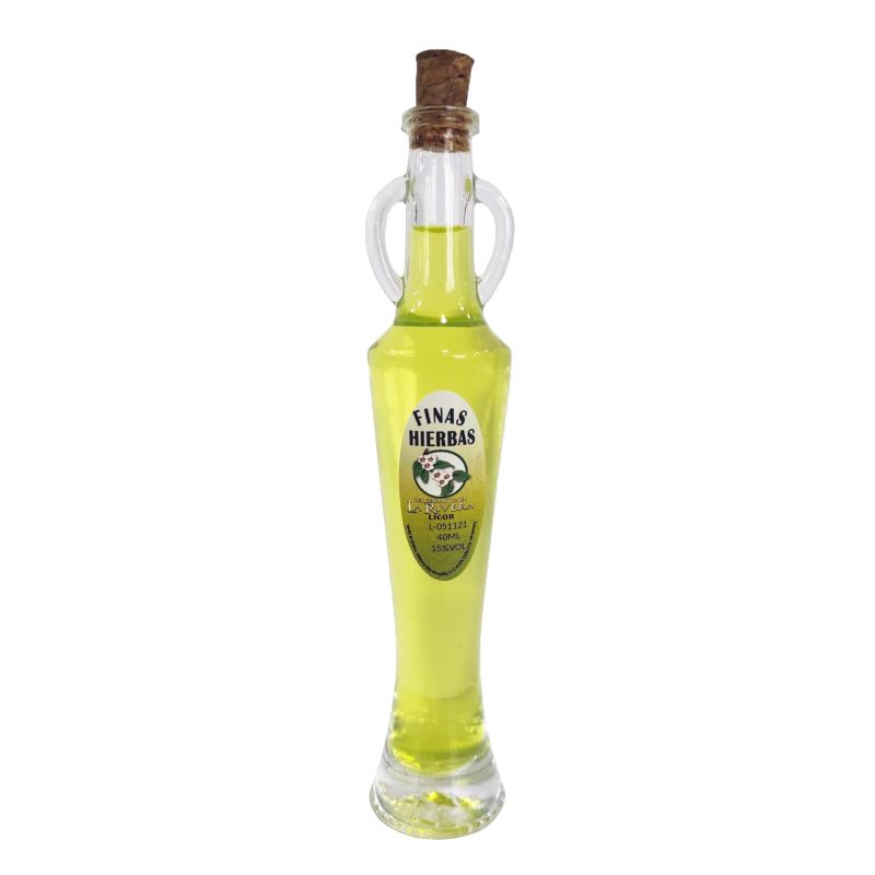 • Botellita de licor Finas Hierbas 100 ml, modelo Edu en cristal