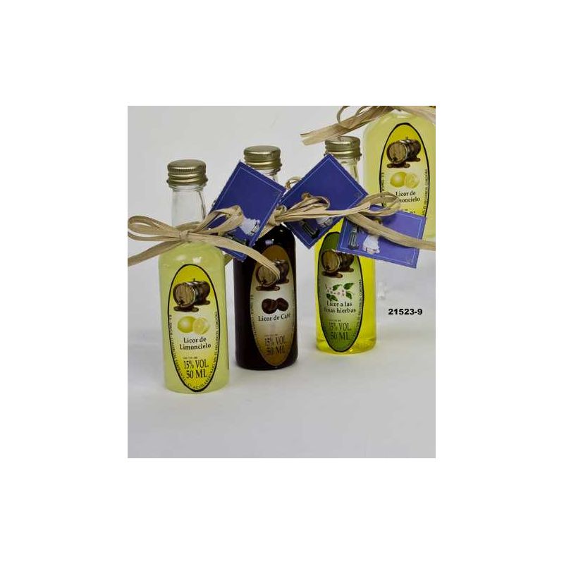 Botellita de licor con 15% Vol. y 40 ml de capacidad. Un detalle de boda que nunca pasa de moda y que siempre alegra la fiesta. Hay quien lo consume al momento y también quien la guarda de recuerdo. Un acierto seguro.
