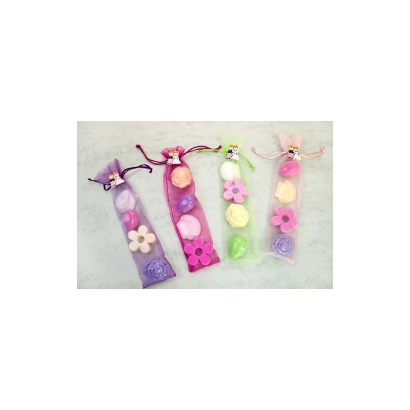 • 2 pastillas de jabón en bolsa de organza, color rosa