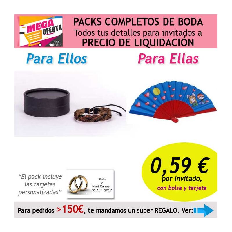 • Pack “Super-Ahorro” de regalos Bodas en Outlet, con bolsas y tarjetas