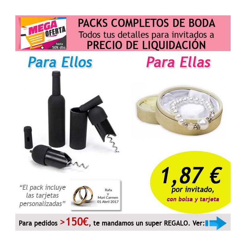 • Pack “Super-Ahorro” de regalos Bodas en Outlet, con bolsas y tarjetas