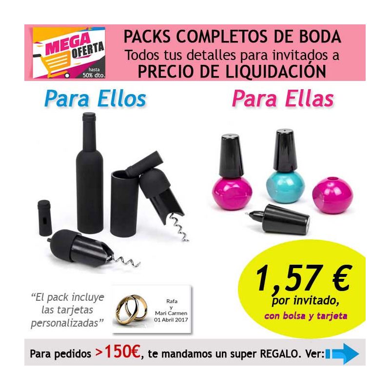 • Pack completo “Super-Ahorro” de regalos para invitados (hombres y mujeres), con bolsas y tarjetas