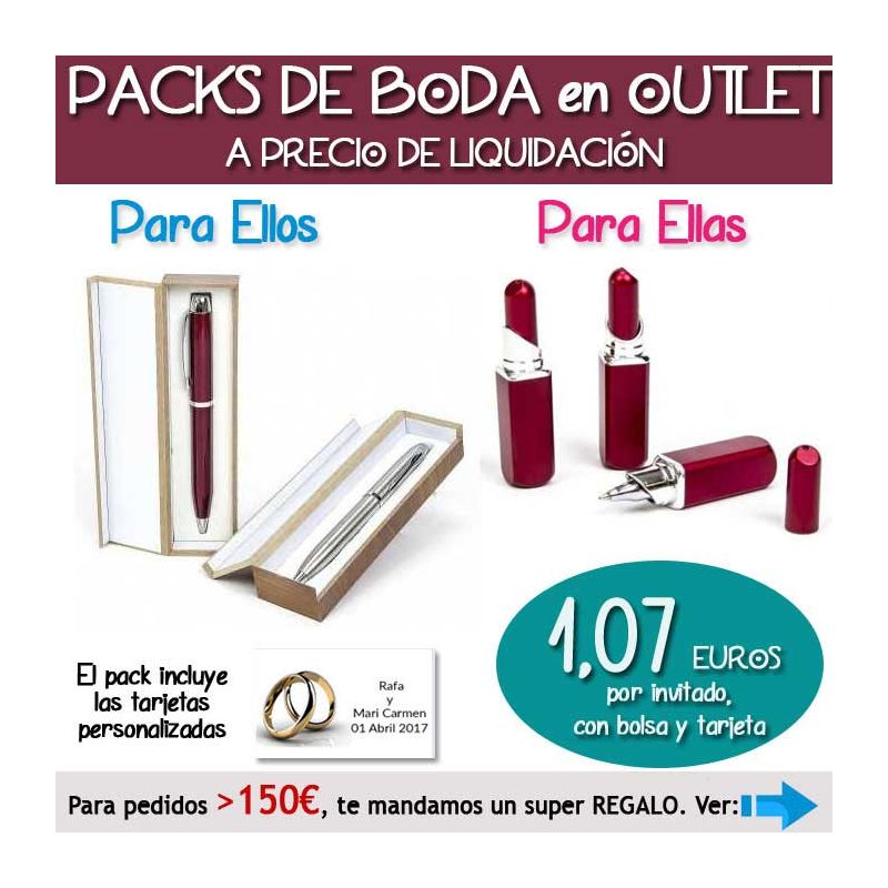 • Pack “Super-Ahorro” de regalos Bodas en Outlet, con bolsas y tarjetas