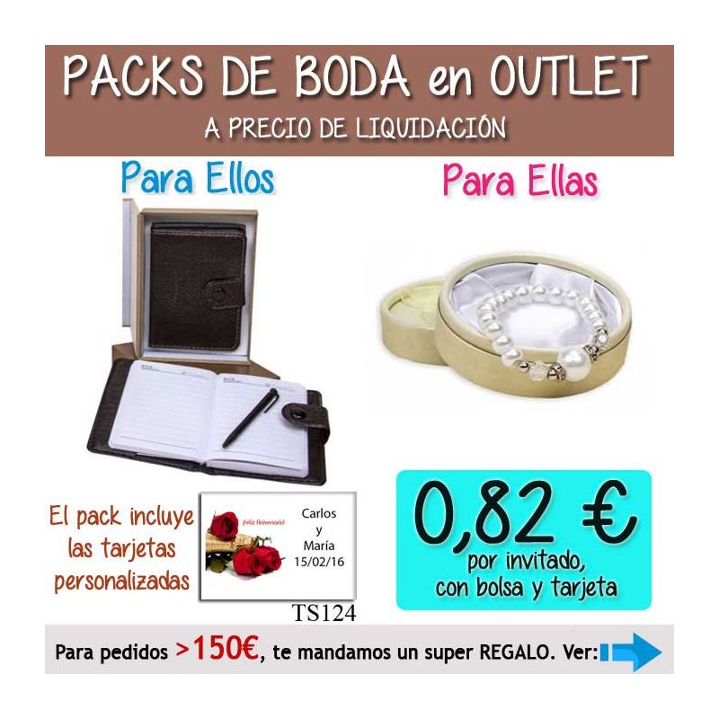 • Pack “Super-Ahorro” de regalos Bodas en Outlet, con bolsas y tarjetas