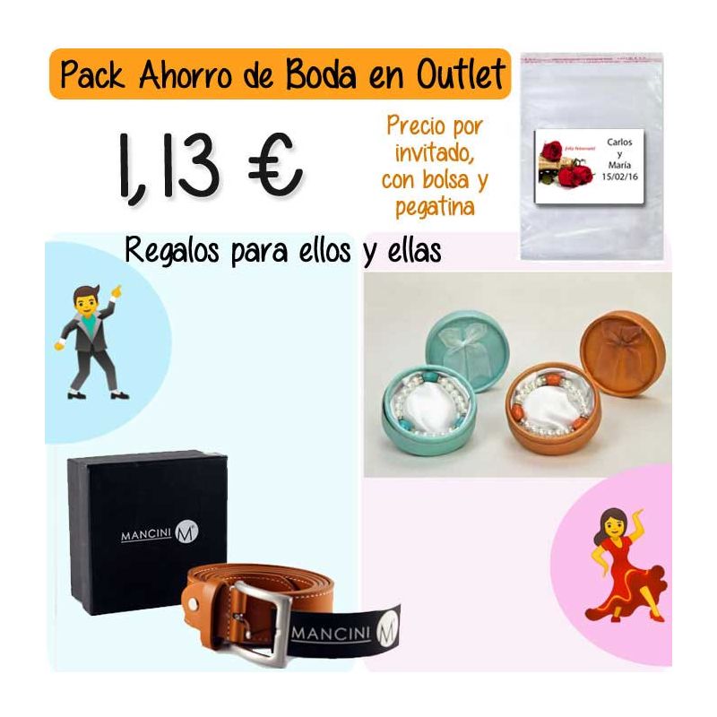 Pack “Super-Ahorro” de regalos Bodas en Outlet, con bolsas y tarjetas