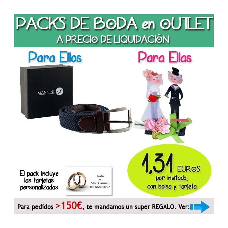 • Pack “Super-Ahorro” de regalos Bodas en Outlet, con bolsas y tarjetas
