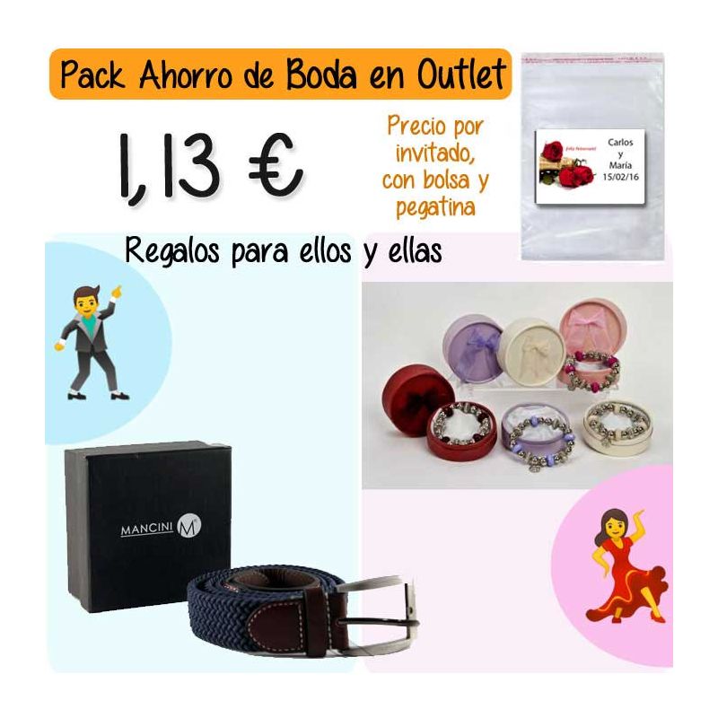 • Pack “Super-Ahorro” de regalos Bodas en Outlet, con bolsas y tarjetas