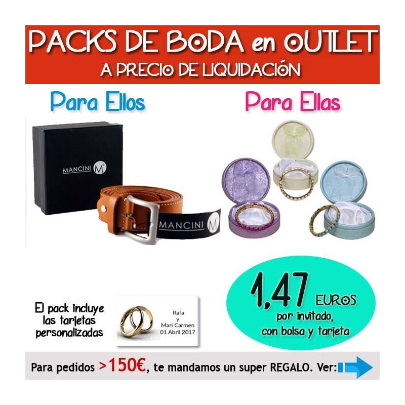 • Pack “Super-Ahorro” de regalos Bodas en Outlet, con bolsas y tarjetas