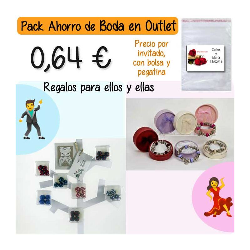 • Pack “Super-Ahorro” de regalos Bodas en Outlet, con bolsas y tarjetas