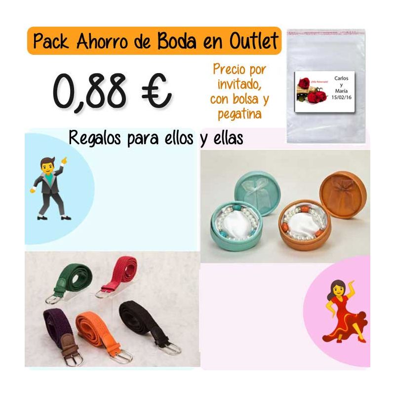 • Pack “Super-Ahorro” de regalos Bodas en Outlet, con bolsas y tarjetas