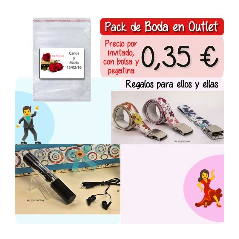 • Pack “Super-Ahorro” de regalos Bodas en Outlet, con bolsas y tarjetas