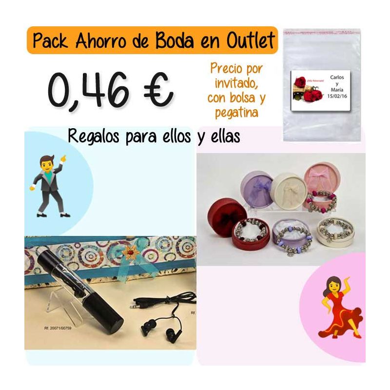 • Pack “Super-Ahorro” de regalos Bodas en Outlet, con bolsas y tarjetas