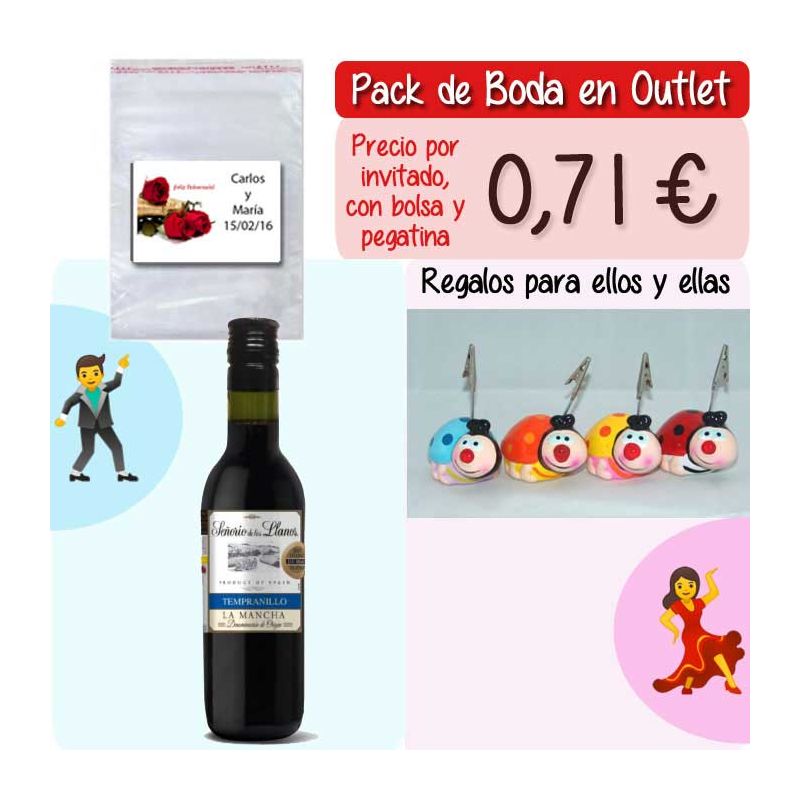 • Pack “Super-Ahorro” de regalos Bodas en Outlet, con bolsas y tarjetas