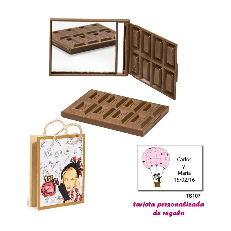 • Espejo de Chapa con chica en la Playa, con bolsa de raso multicolor, y tarjeta personalizada