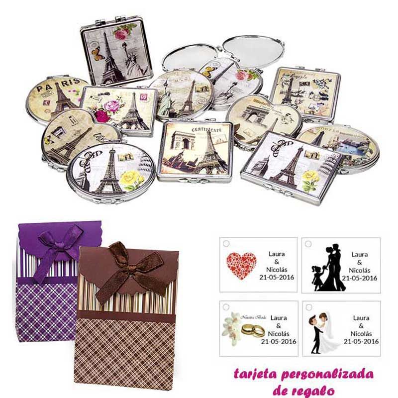 • Espejo plateado con una flor grande, y con un peine en el interior, con bolsa básica de celofan, y tarjeta personalizada