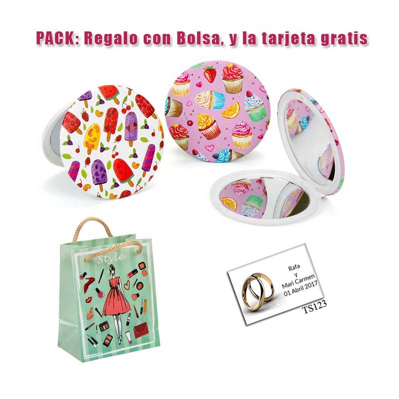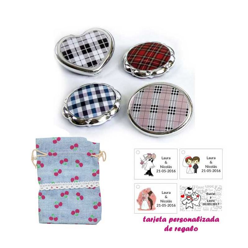 Espejos vintage con motivos de ciudades, con bolsa básica de celofan, y tarjeta personalizada