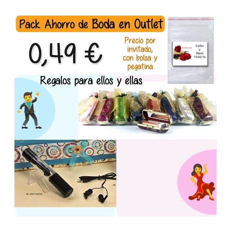 • Pack “Super-Ahorro” de regalos Bodas en Outlet, con bolsas y tarjetas