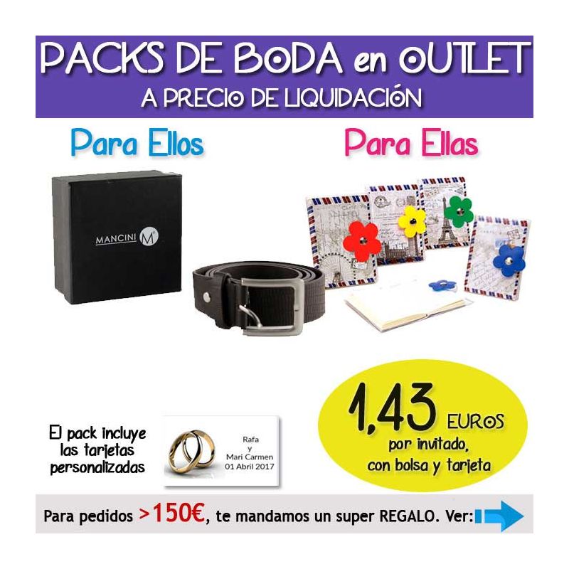 • Pack completo “Super-Ahorro” de regalos para invitados (hombres y mujeres), con bolsas y tarjetas