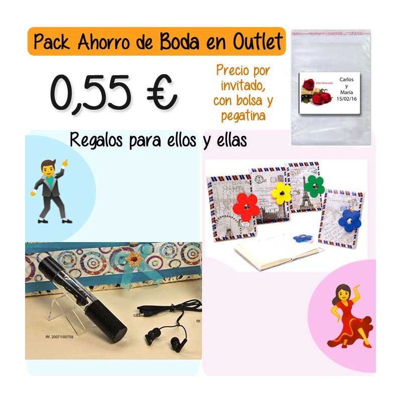 • Pack “Super-Ahorro” de regalos Bodas en Outlet, con bolsas y tarjetas
