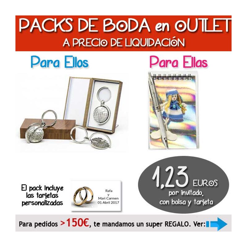 • Pack “Super-Ahorro” de regalos Bodas en Outlet, con bolsas y tarjetas