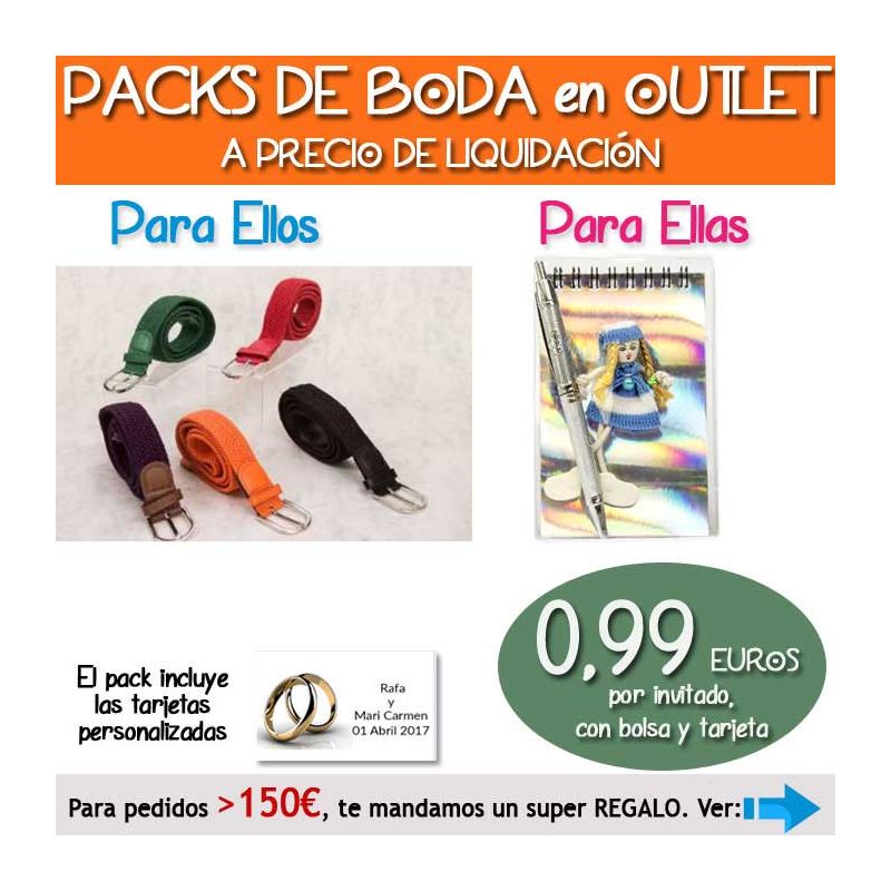 • Pack “Super-Ahorro” de regalos Bodas en Outlet, con bolsas y tarjetas