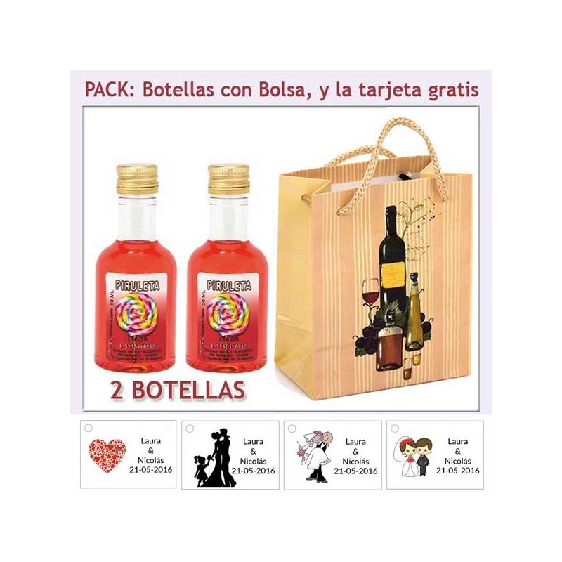 Pack licor con bolsa organza y tarjeta personalizada