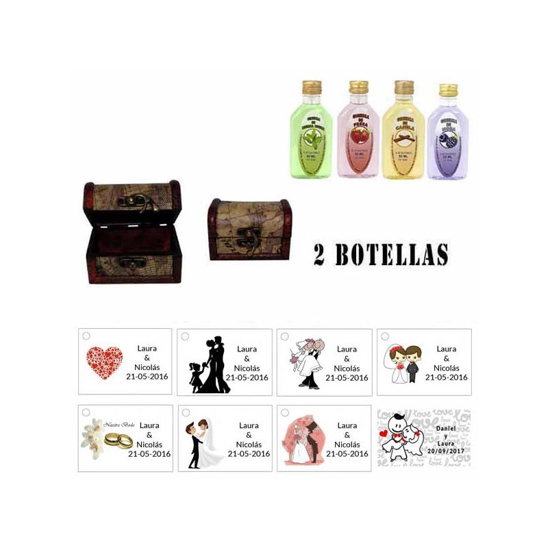 • Detalle invitados boda 2 licores con baúl