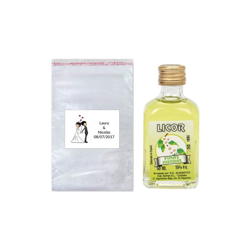 • Licor de café 20 ml con etiqueta de novio y bolsa con moto