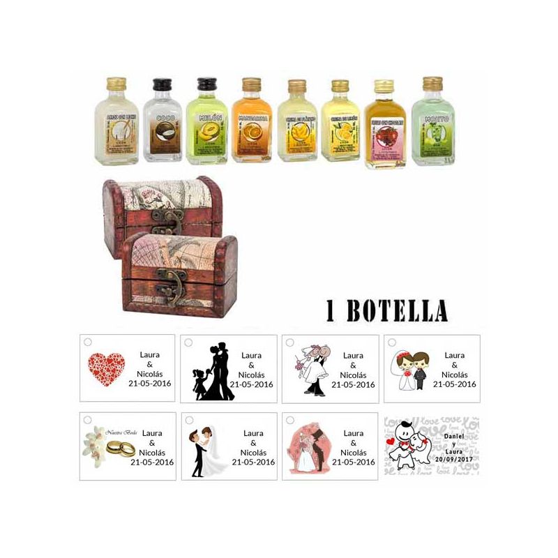 • Licor de crema para ella y licor de café para él, con cajas de novio y novia a juego