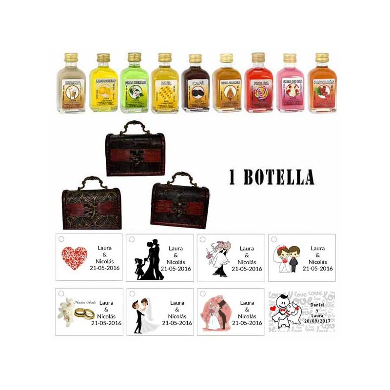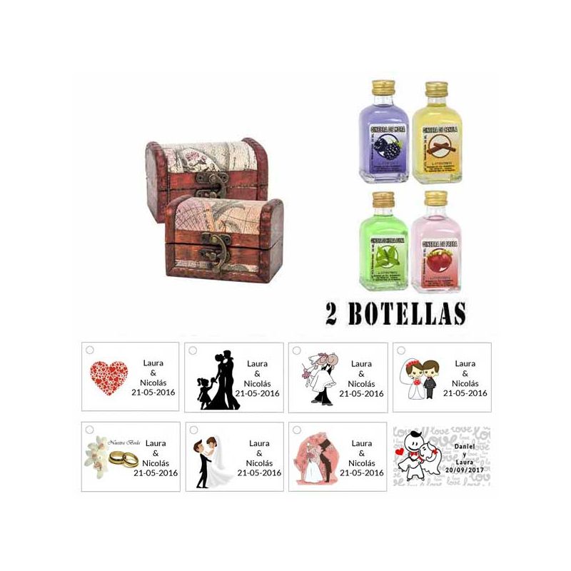 • 2 Botellitas de Licor de Finas Hierbas con bolsa y tarjeta