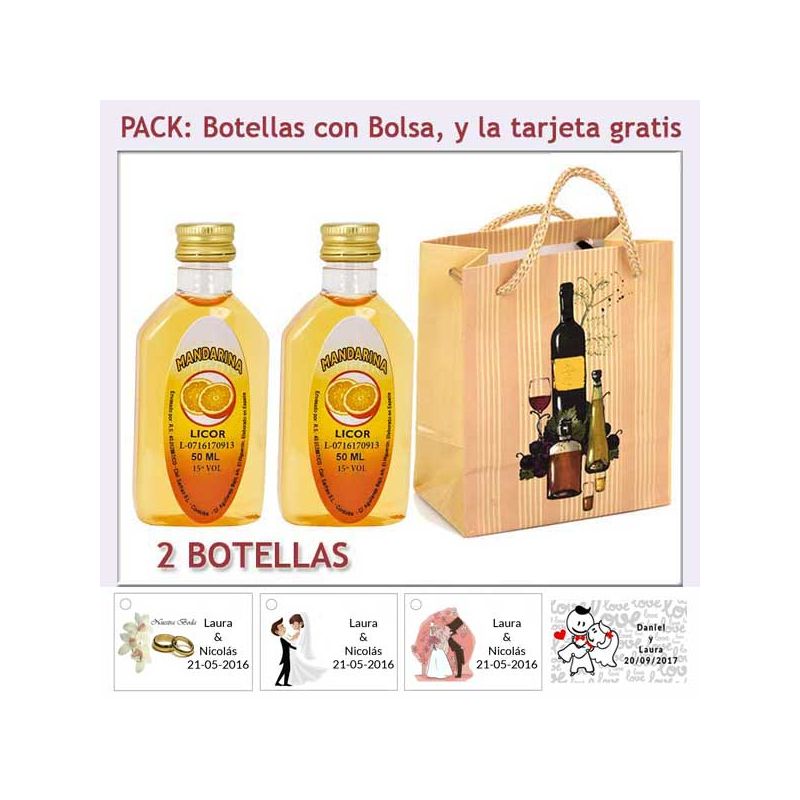 • 2 Botellitas de Licor de Pacharán con bolsa y tarjeta
