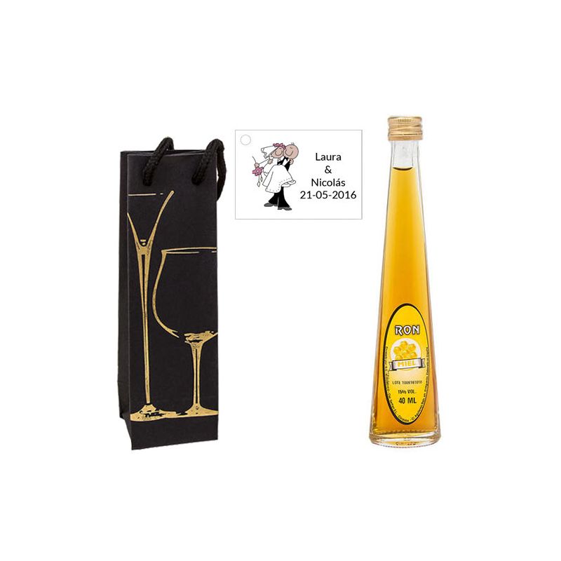 • 2 Botellitas de Licor de Pacharán con bolsa y tarjeta