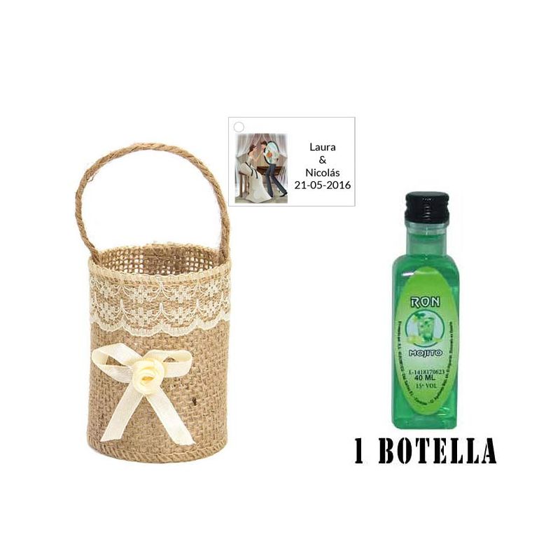 • Botellita de Licor de Mandarina con bolsa "bodegón" y tarjeta