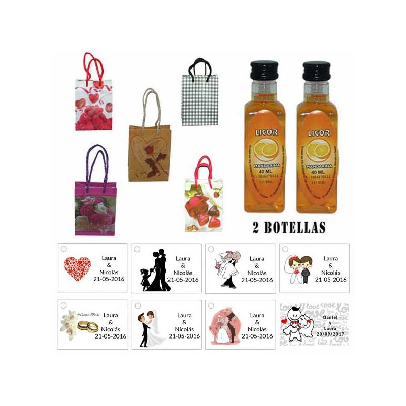 • 2 Botellitas de Licor Piruleta con bolsa "charlestón" y tarjeta
