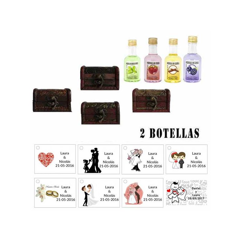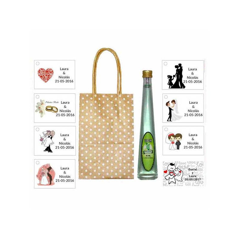 • 2 Botellitas de Ron Miel con bolsa "charlestón" y tarjeta