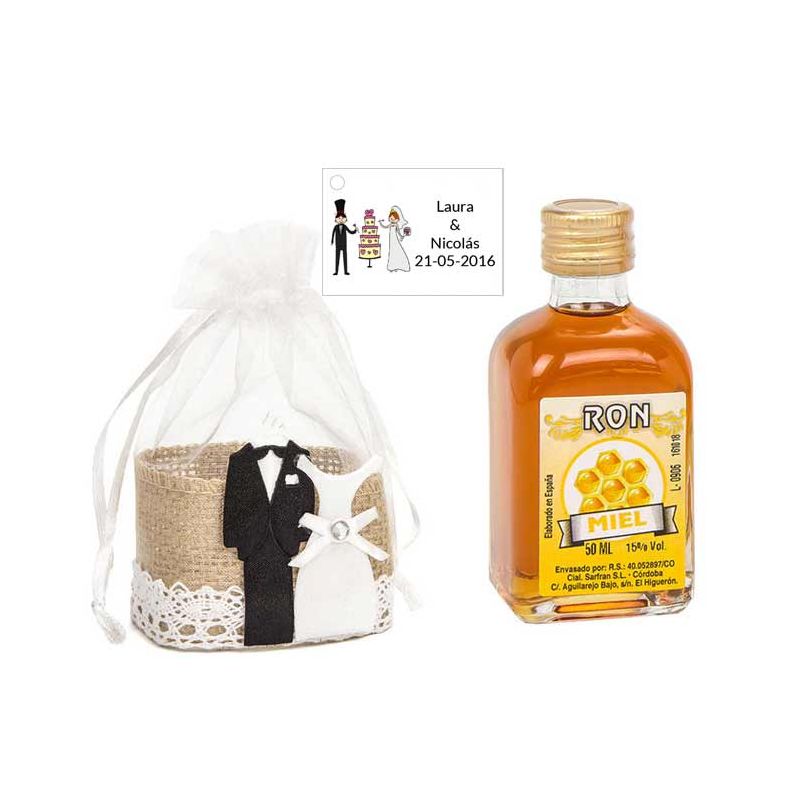 • Botellita de Ron Miel con bolsa “bodegón” y tarjeta