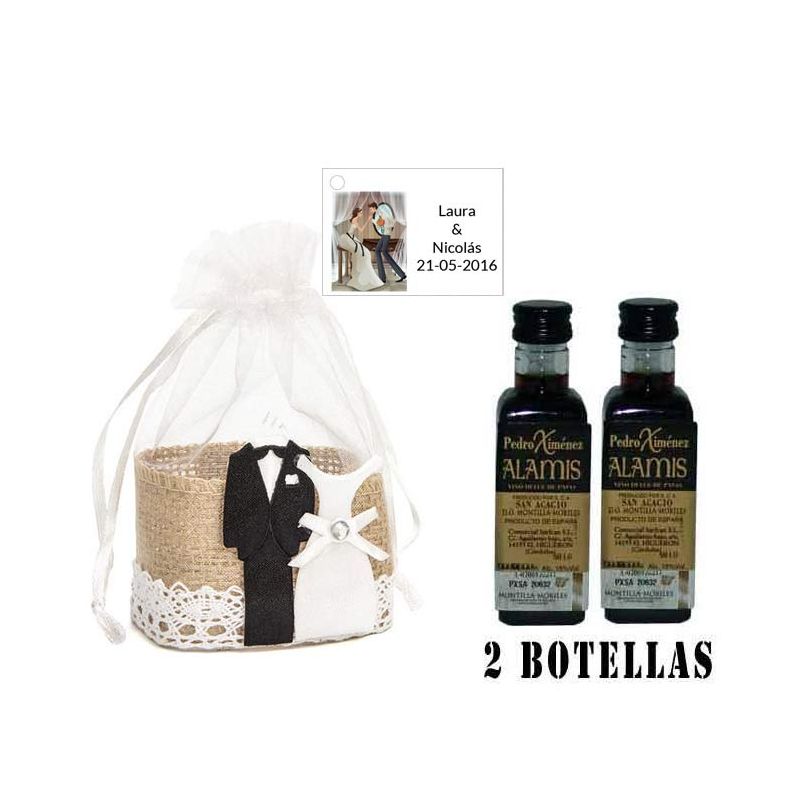 • 2 Botellitas de Licor de Piruleta con bolsa “bodegón” y tarjeta