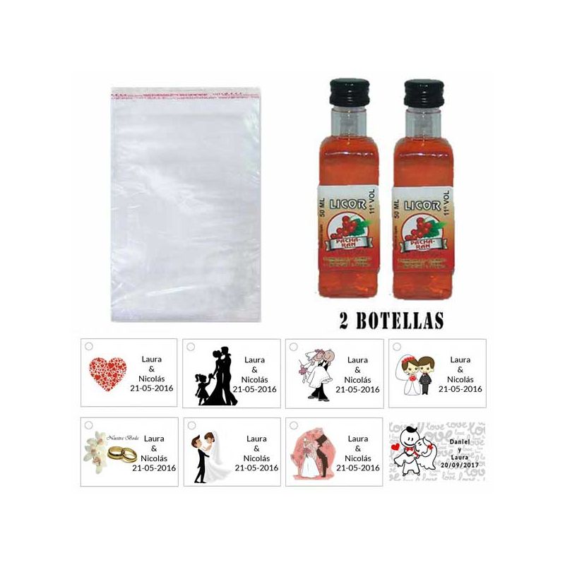 • Botellita de Pacharán con bolsa “charlestón” y tarjeta