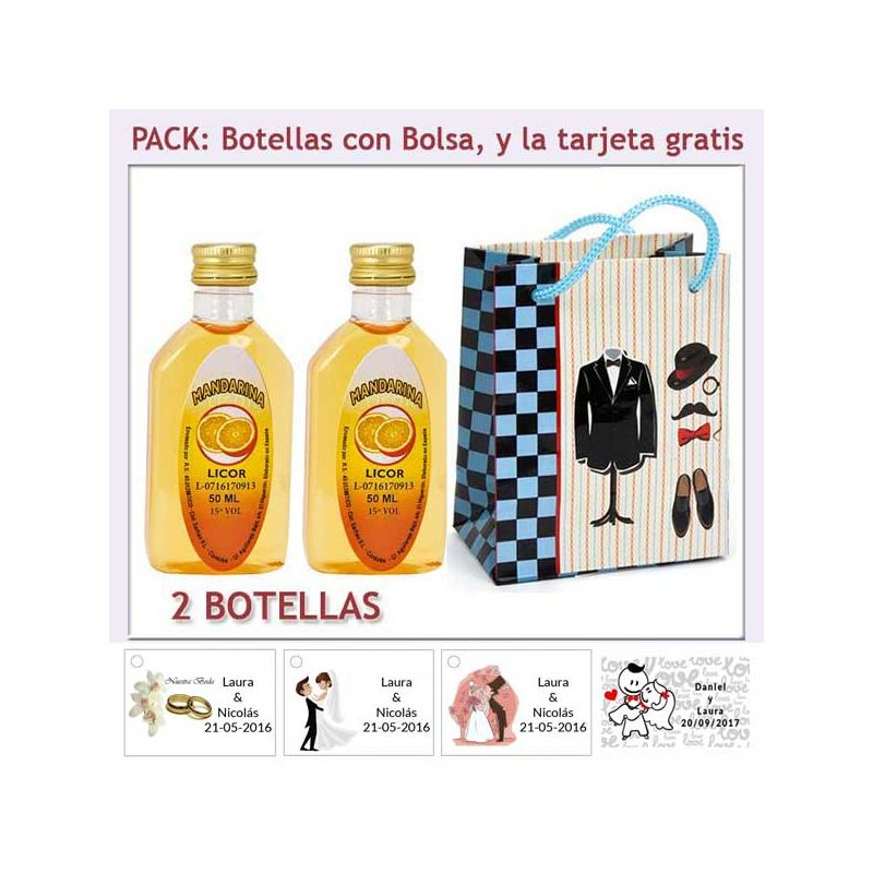 2 Botellitas de Pacharán con bolsa “con moto roja” y tarjeta