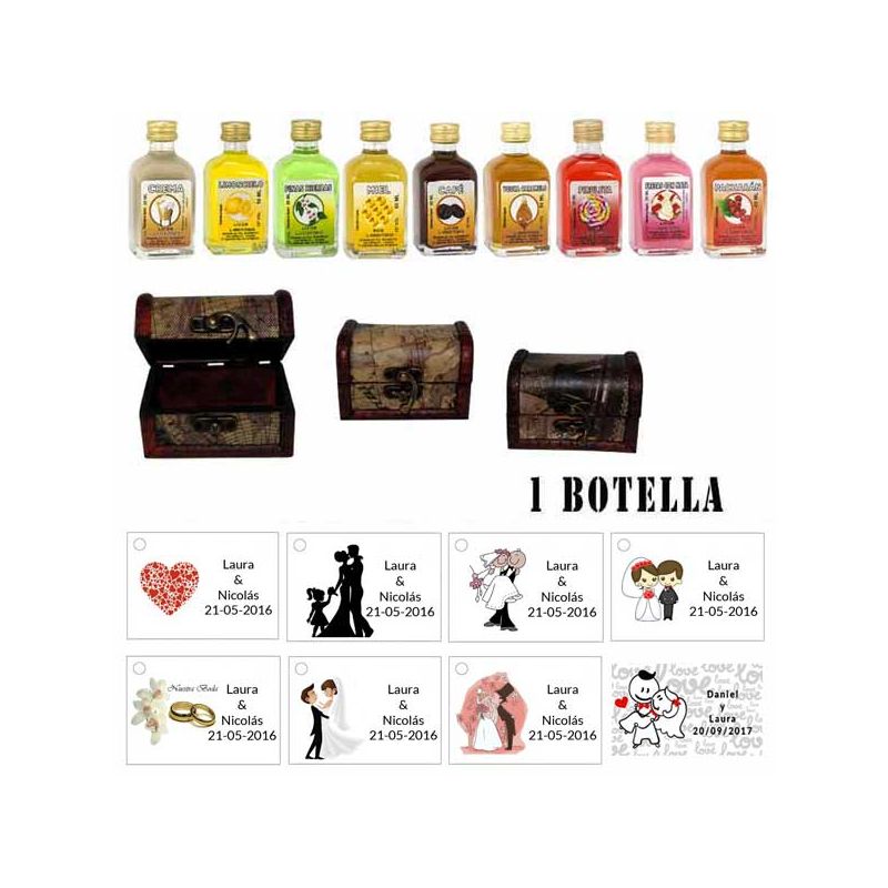 • Botellita de Licor de Arroz con Leche con bolsa “bodegón” y tarjeta