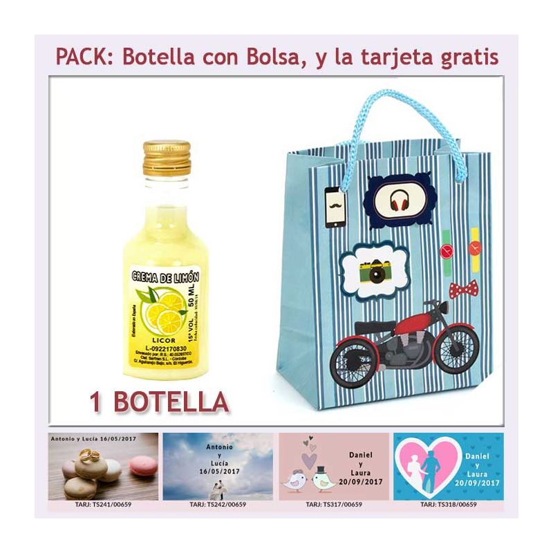 • Botellita de Licor de Finas Hierbas con bolsa “con moto roja” y tarjeta