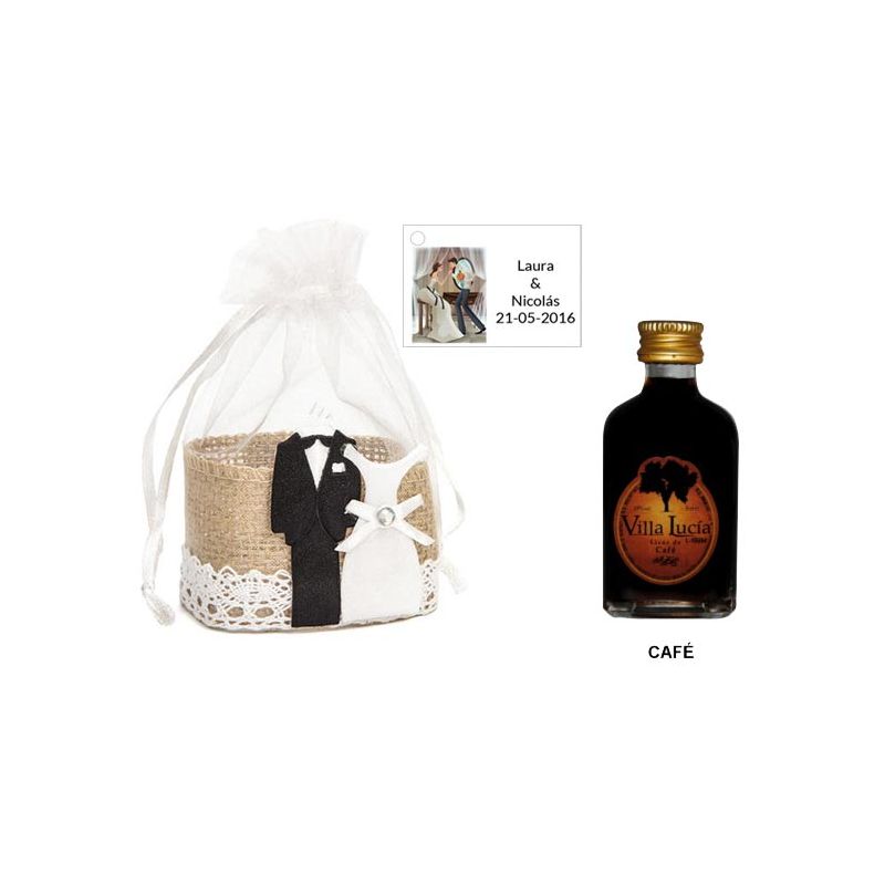 • Botellita Petaca de Licor de Café con bolsa “bodegón” y tarjeta