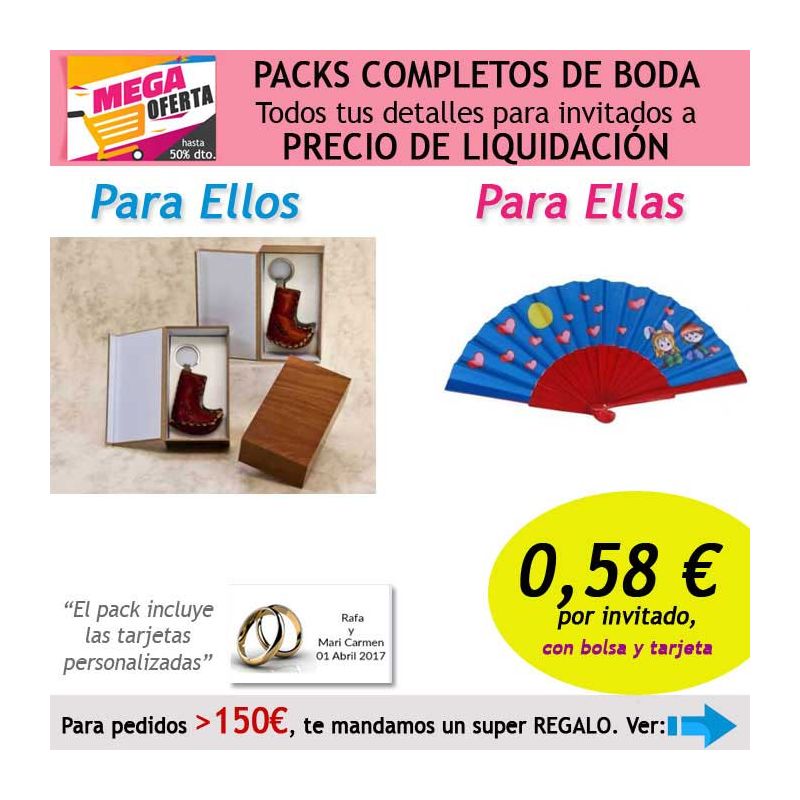 • Pack “Super-Ahorro” de regalos Bodas en Outlet, con bolsas y tarjetas
