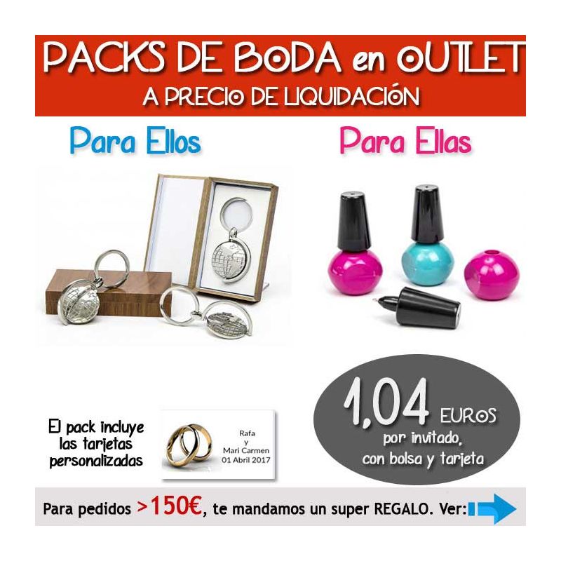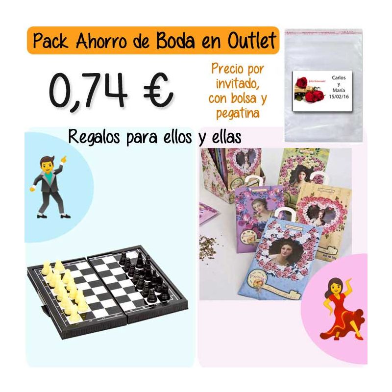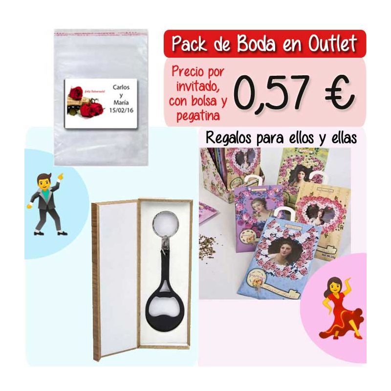 • Pack “Super-Ahorro” de regalos Bodas en Outlet, con bolsas y tarjetas