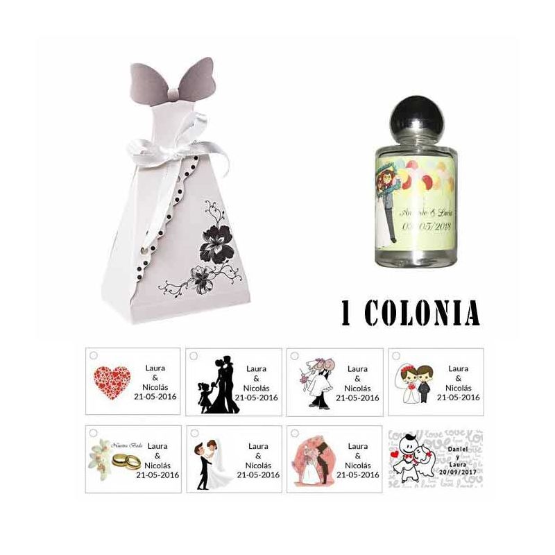 Colonia detalles de boda con caja de acetato