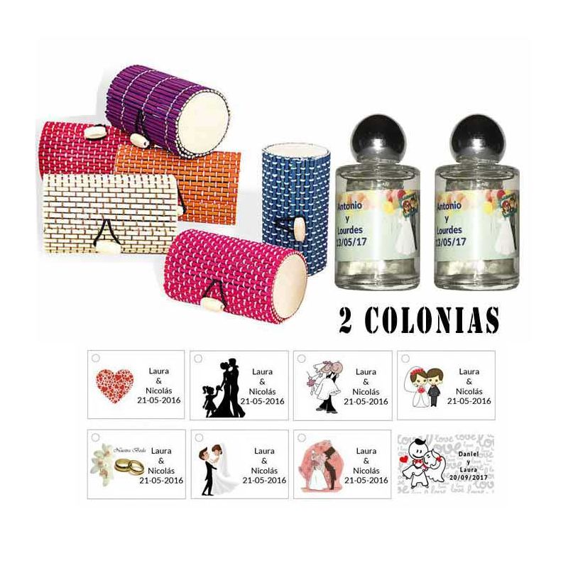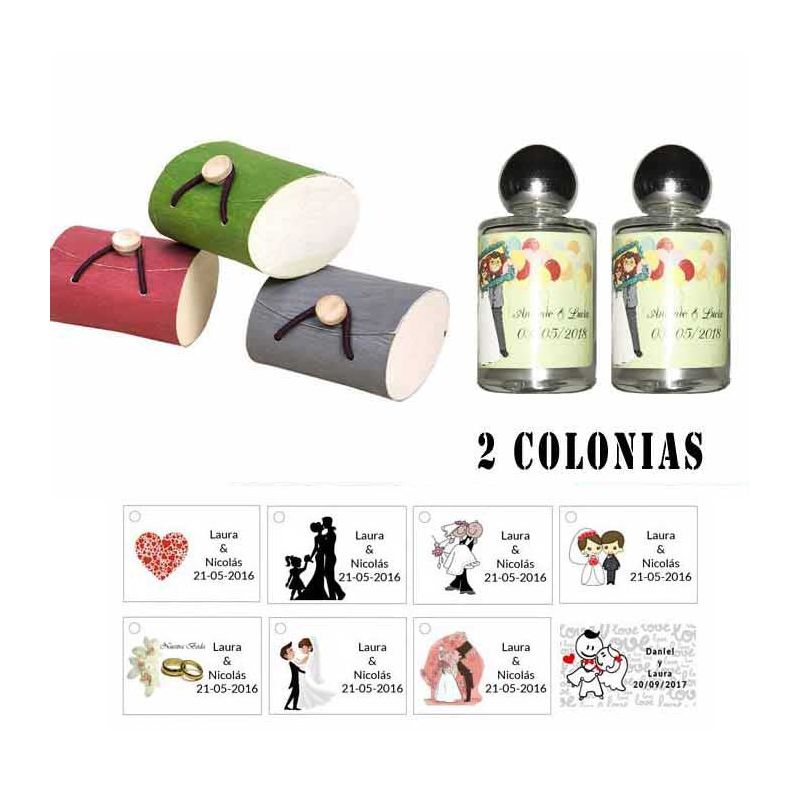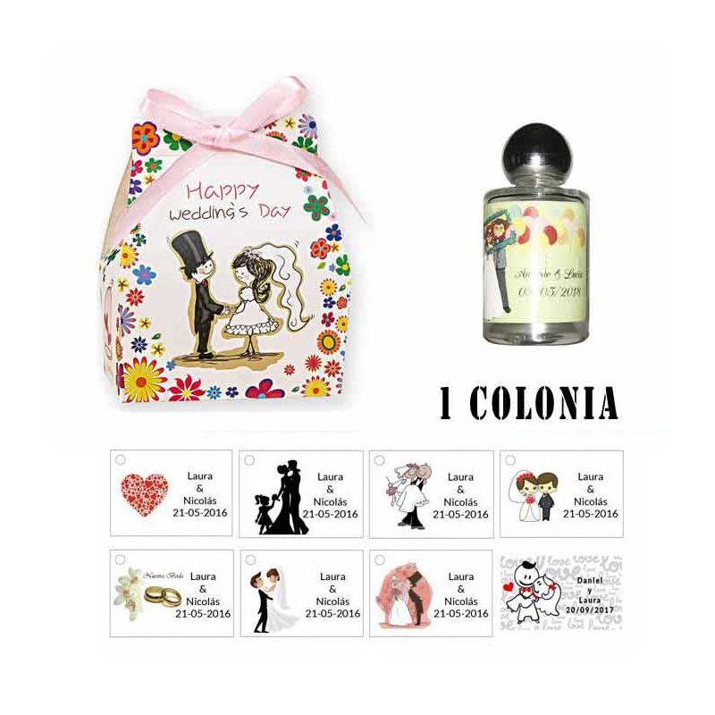 Colonias detalles boda en caja de acetato