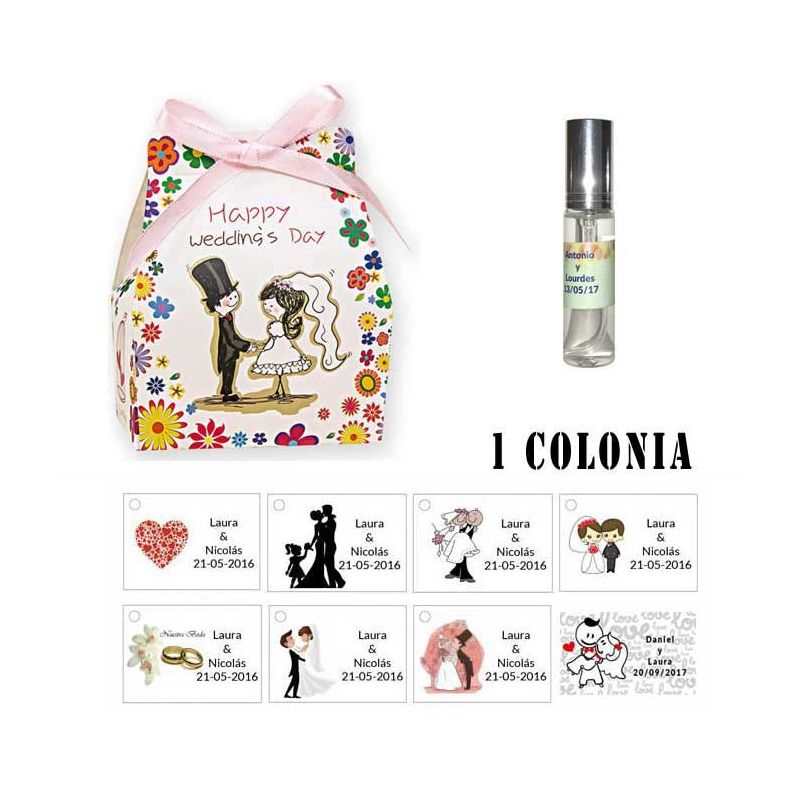 Colonias detalles de boda con caja de madera