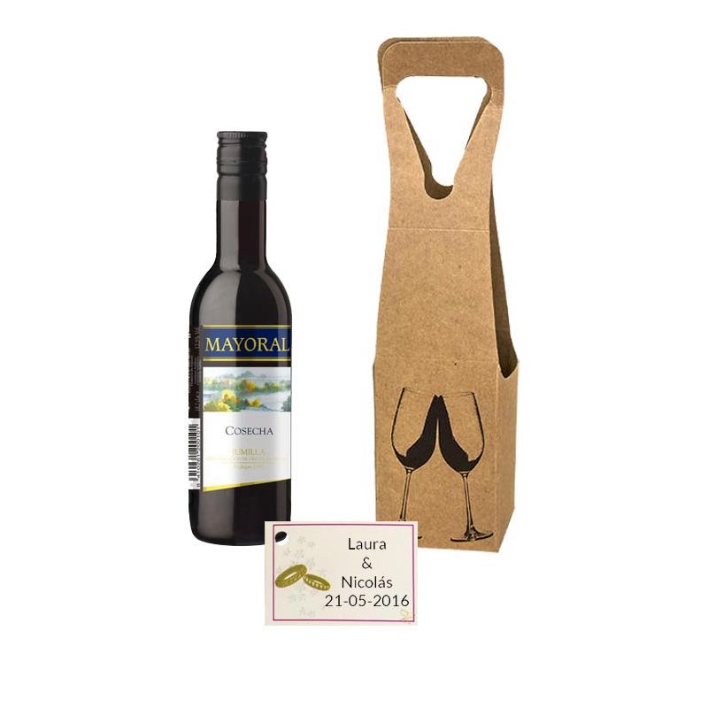 • Vino en bolsa con tarjeta personalizada regalo boda