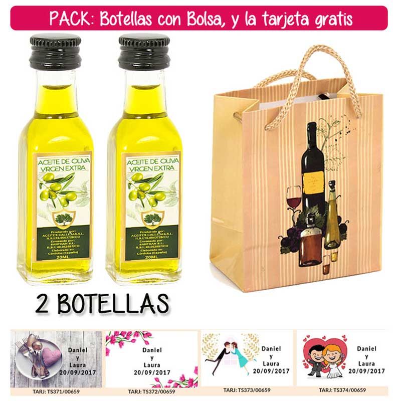 • 2 Botellitas de Aceite de Oliva Virgen Extra con bolsa “charlestón” y tarjeta